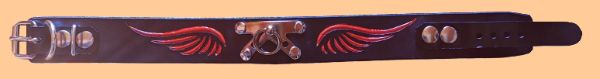 erhaben punziertes Red Devil-Design, 2 seitliche 40 mm Rollschnallen, 10 D-Ringe verschiedener Größen,